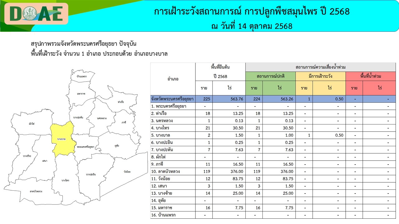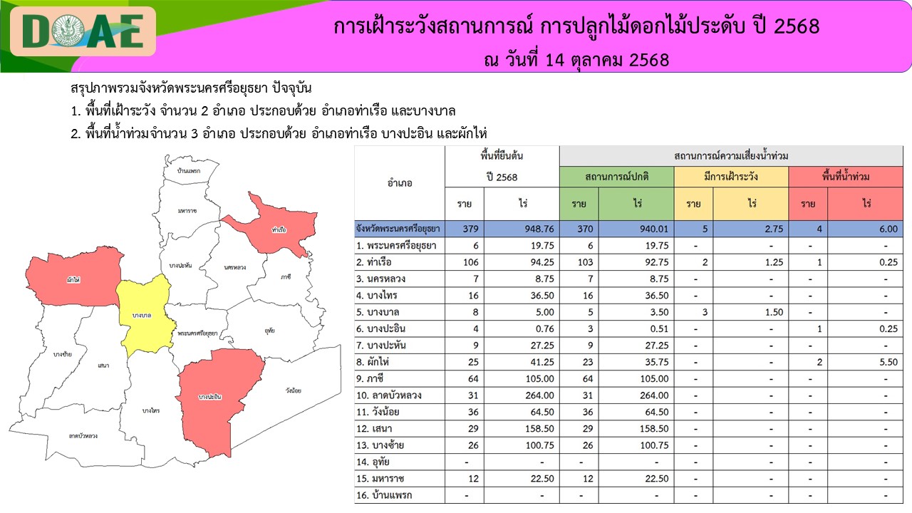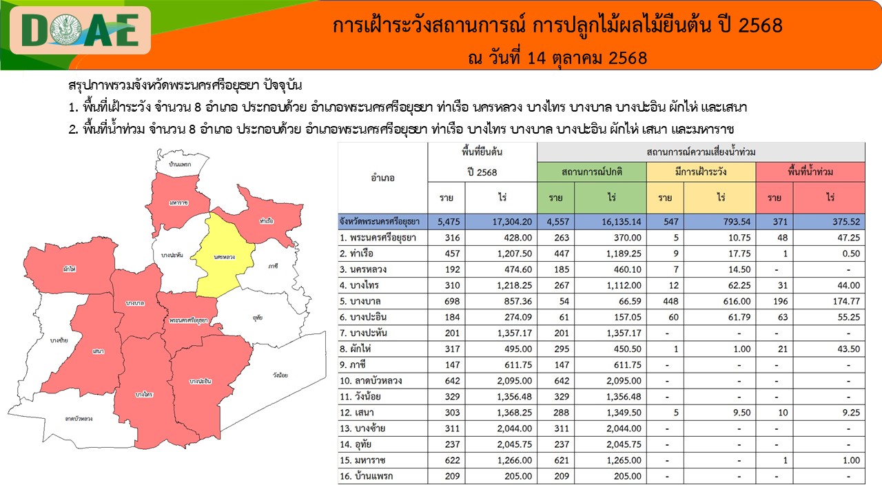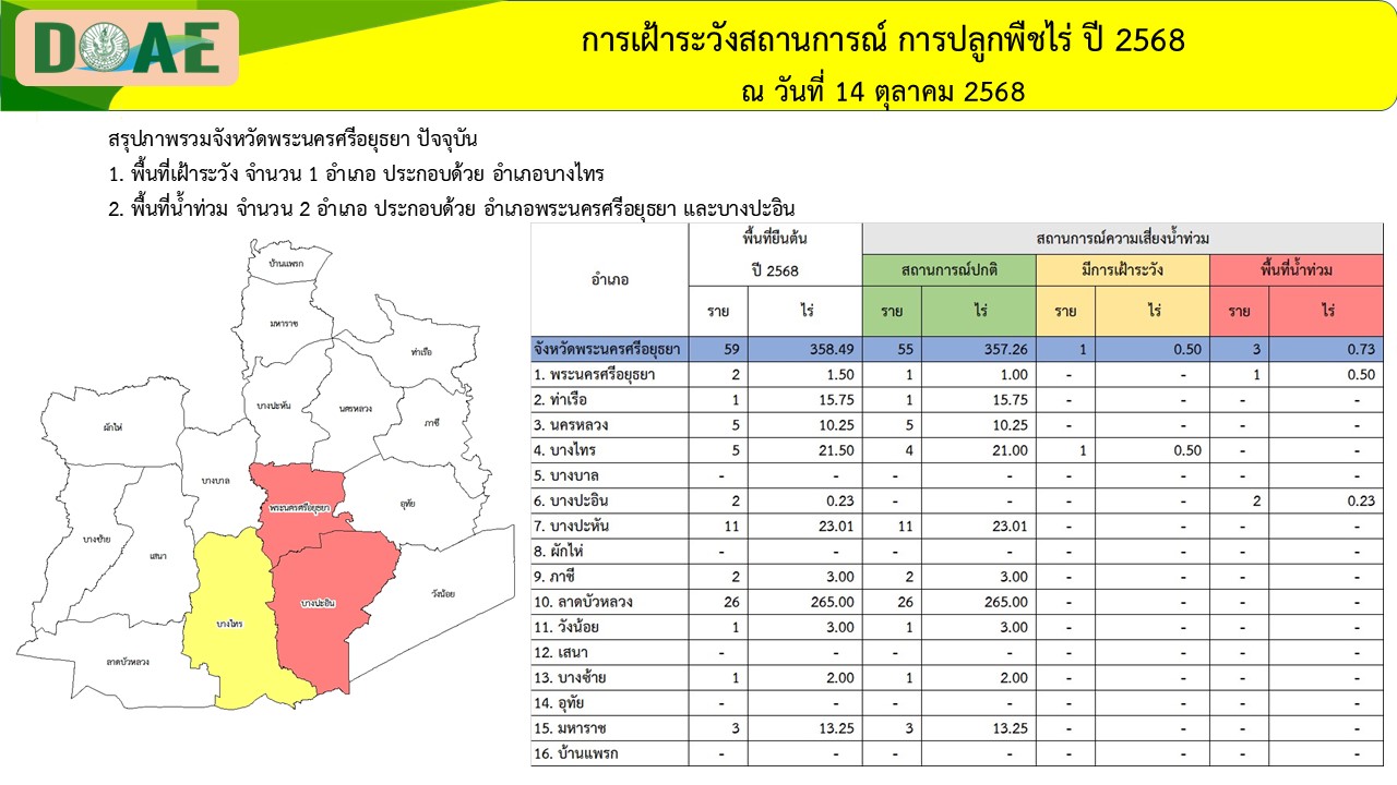 รายงานข้อมูลสถานการณ์ภัยพิบัติด้านพืช จังหวัดพระนครศรีอยุธยา