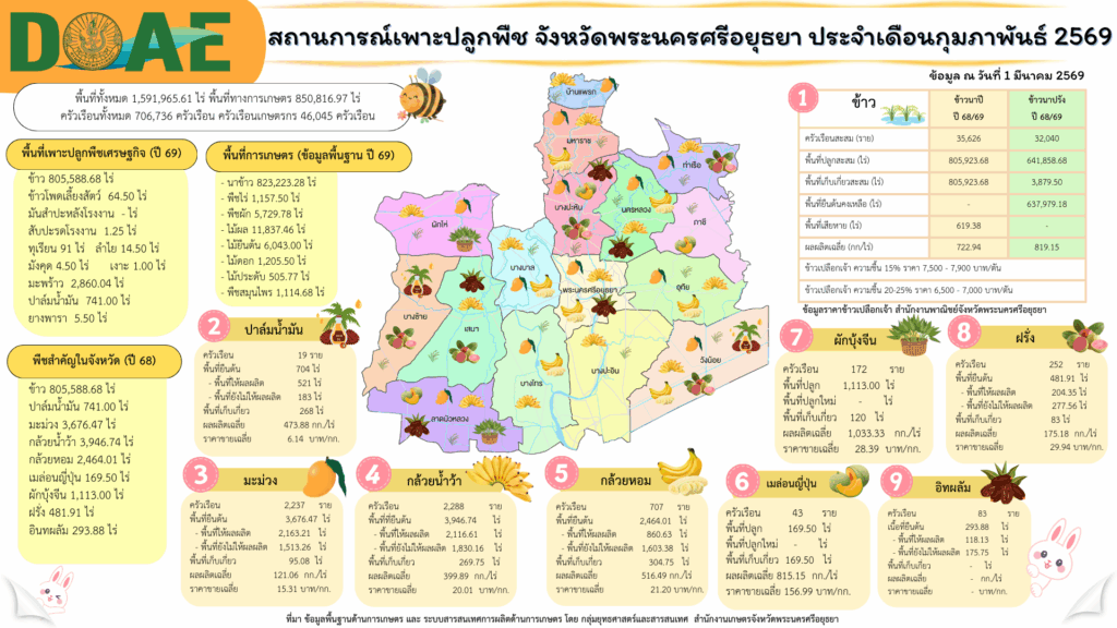 สถานการณ์การผลิตพืช ประจำเดือนกุมภาพันธ์ 2569