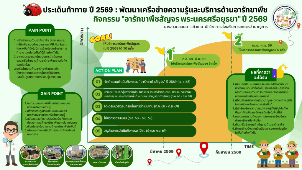 ประเด็นท้าทาย กลุ่มอารักขาพืชการพัฒนาเครือข่ายความรู้และบริการด้านอารักขาพืช กิจกรรม “อารักขาพืชสัญจร พระนครศรีอยุธยา” ปี 2569 ayutthaya_doae / 11/03/2026 โดย นางสาวกลอยตา แก้