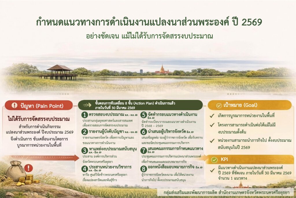 ประเด็นท้าทาย กลุ่มส่งเสริมและพัฒนาการผลิตการขับเคลื่อนการดำเนินงานแปลงนาส่วนพระองค์ (โดยไม่ใช้งบประมาณ) ayutthaya_doae / 13/03/2026