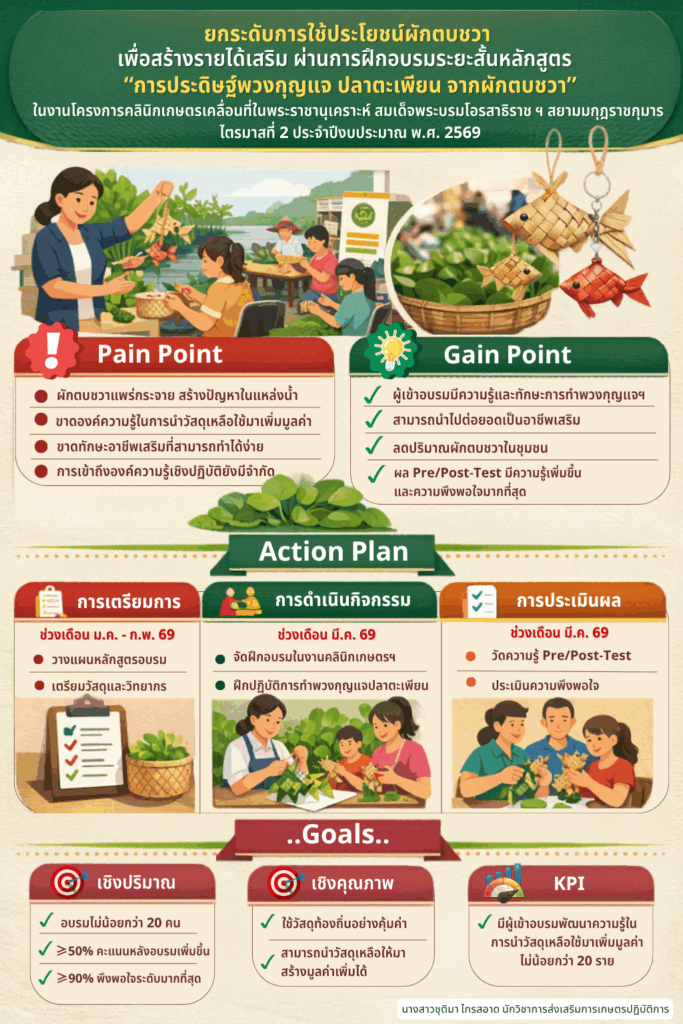 ประเด็นท้าทาย กลุ่มส่งเสริมและพัฒนาการผลิตยกระดับการใช้ประโยชน์ผักตบชวา เพื่อสร้างรายได้เสริม ayutthaya_doae / 07/04/2026