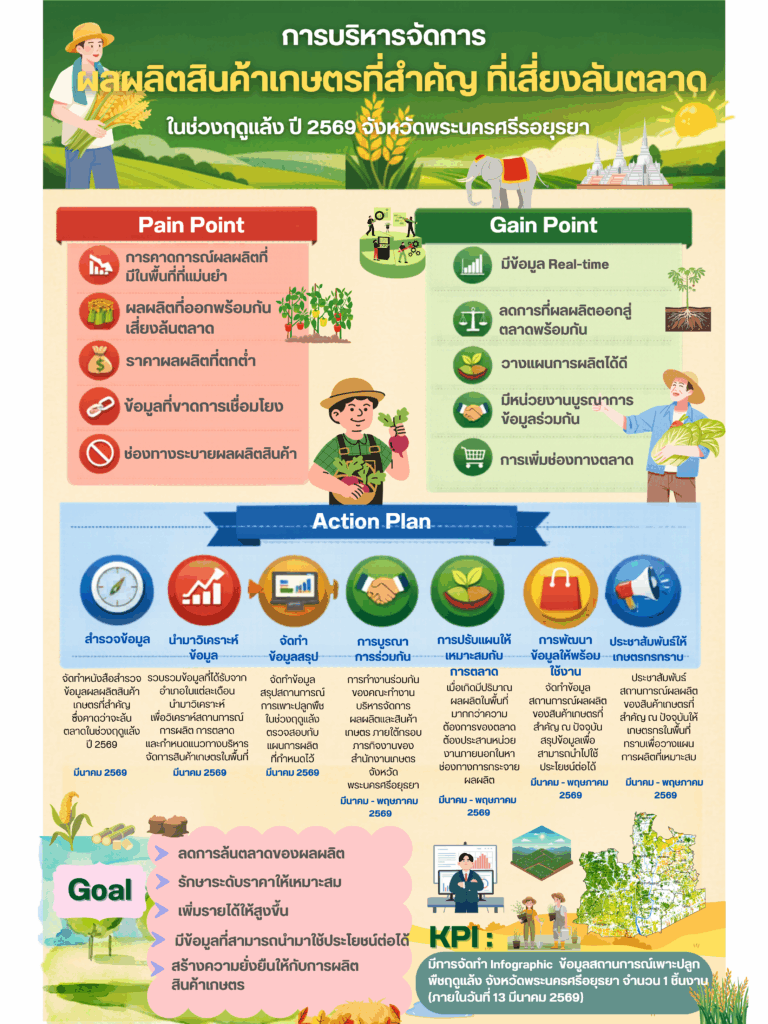 ประเด็นท้าทาย กลุ่มส่งเสริมและพัฒนาการผลิตการบริหารจัดการผลผลิตสินค้าเกษตรที่สำคัญ ที่เสี่ยงล้นตลาด ในช่วงฤดูแล้ง ปี 2569 ayutthaya_doae / 07/04/2026