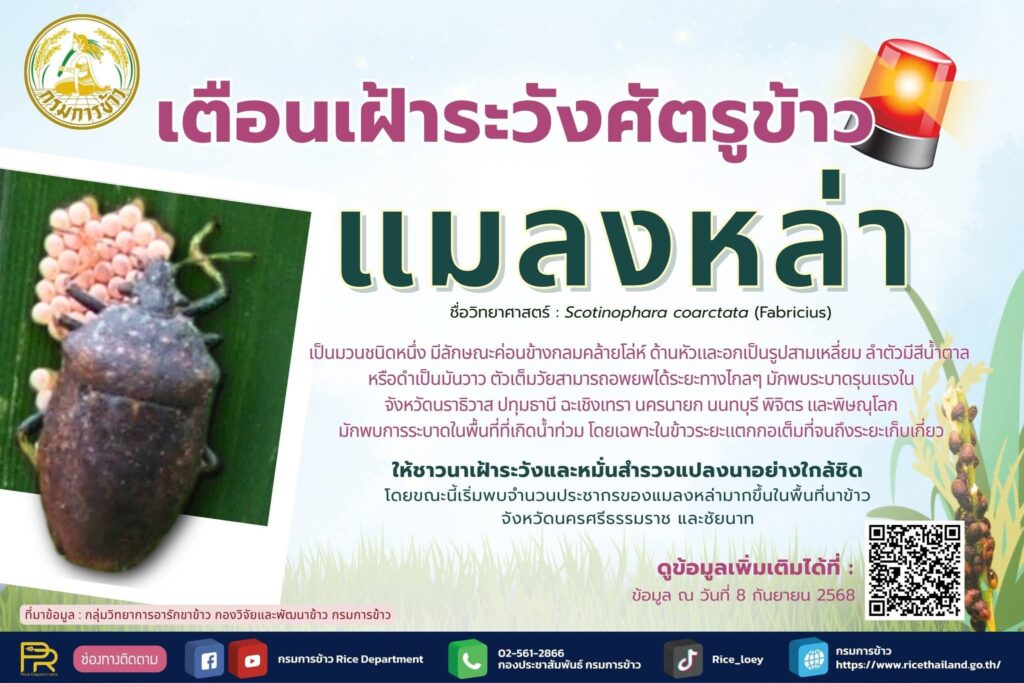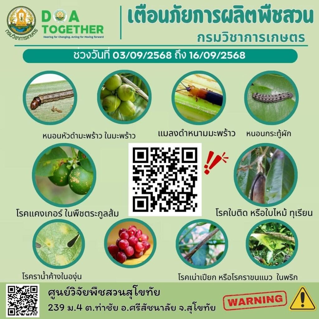 ข่าวแจ้งเตือนการระบาดศัตรูพืชเตือนภัยเกษตรกรผู้ปลูกพืชสวน ayutthaya_doae / 15/09/2025 🚨 เตือนภัยเกษตรกรผู้