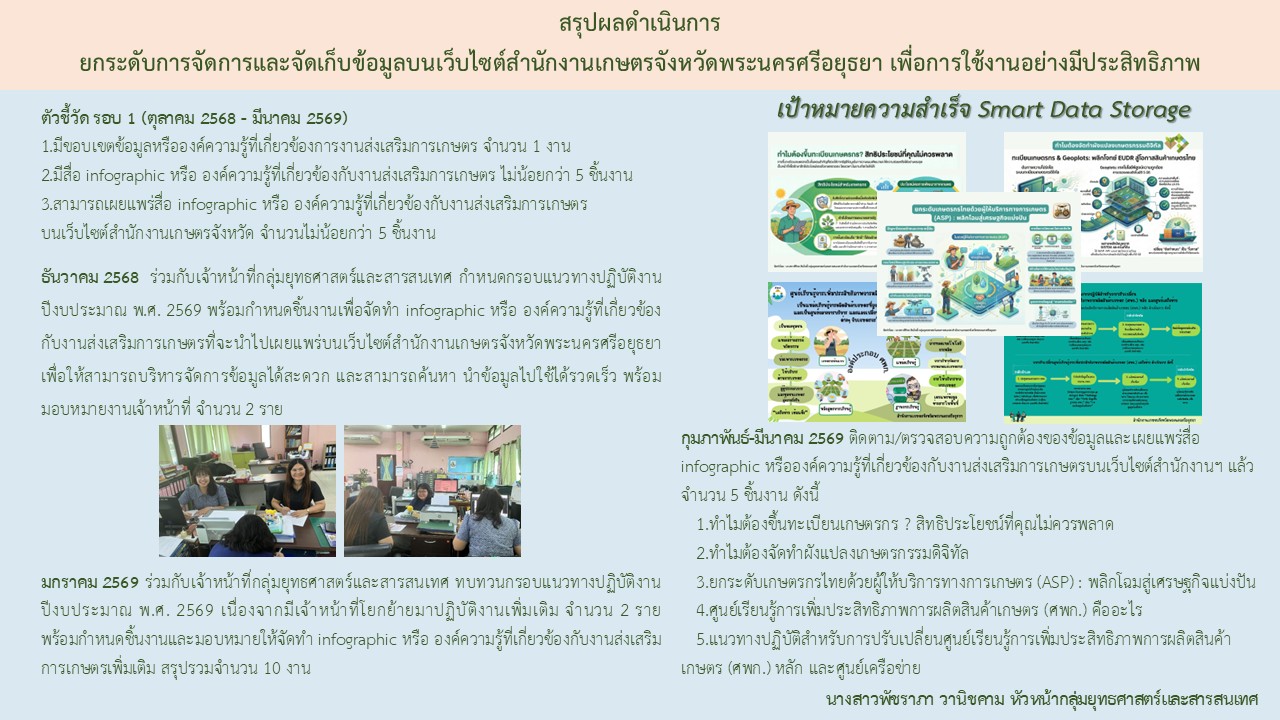 ยกระดับการจัดการและจัดเก็บข้อมูลบนเว็บไซต์สำนักงานเกษตรจังหวัดพระนครศรีอยุธยา เพื่อการใช้งานอย่างมีประสิทธิภาพBy ayutthaya_doae / 20/03/2026