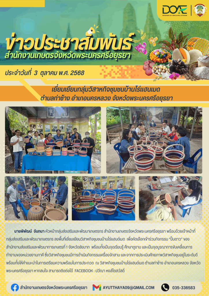 เยี่ยมเยียนกลุ่มวิสาหกิจชุมชนบ้านไร่แฮนเมด ตำบลท่าช้าง อำเภอนครหลวง จังหวัดพระนครศรีอยุธยาBy ayutthaya_doae / 08/10/2025