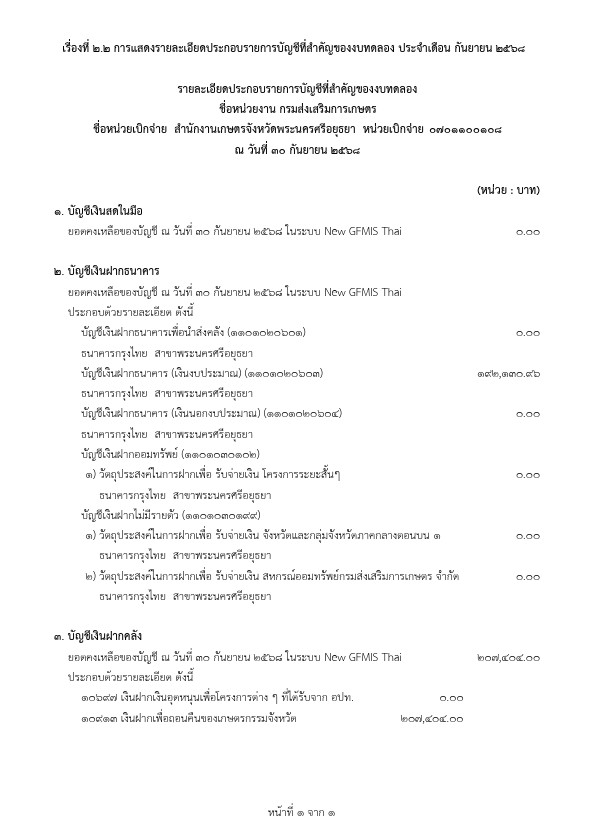 การแสดงรายละเอียดประกอบรายการบัญชีที่สำคัญของงบทดลอง ประจำเดือนกันยายน 2568By ayutthaya_doae / 14/10/2025