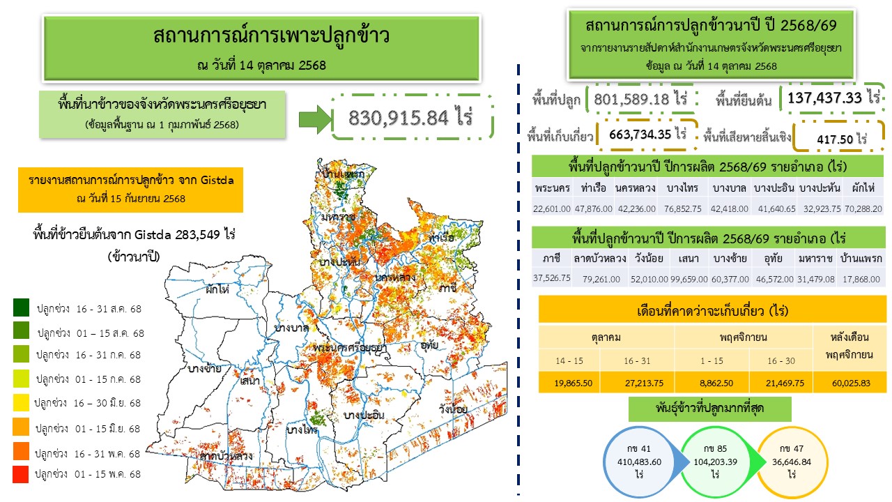 สถานการณ์ผลิตข้าว (วันที่ 14 ตุลาคม 2568)