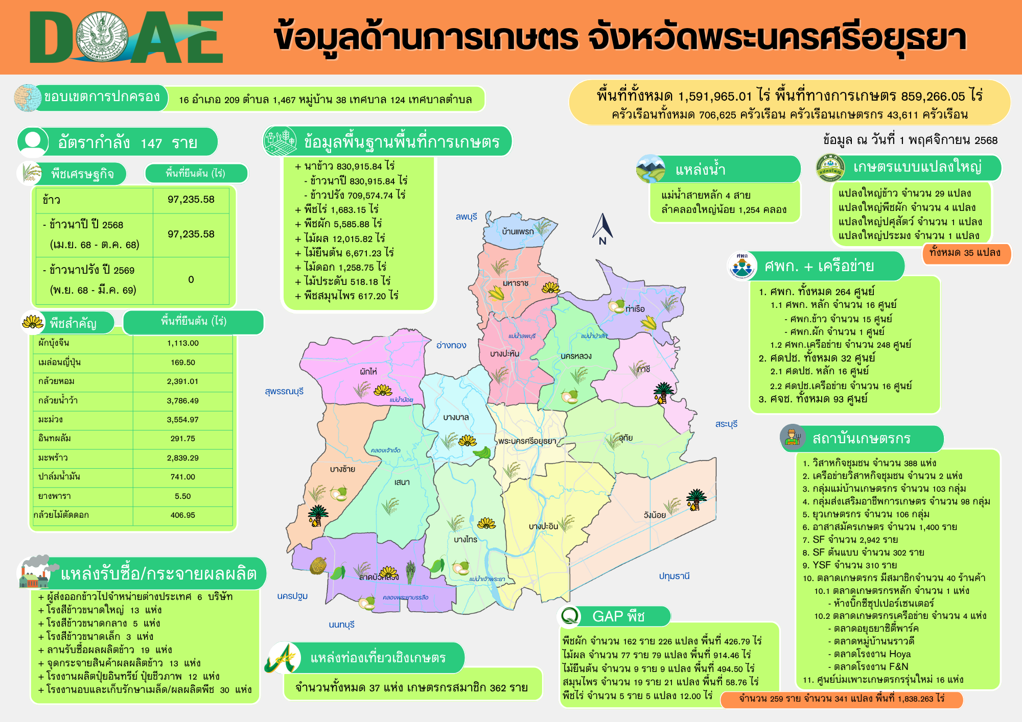 ข้อมูลพื้นฐานด้านการเกษตร ประจำเดือนพฤศจิกายน 2568