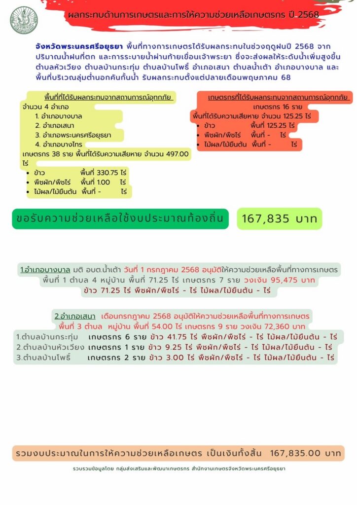 ผลกระทบด้านการเกษตรและการให้ความช่วยเหลือเกษตรกร ปี 2568