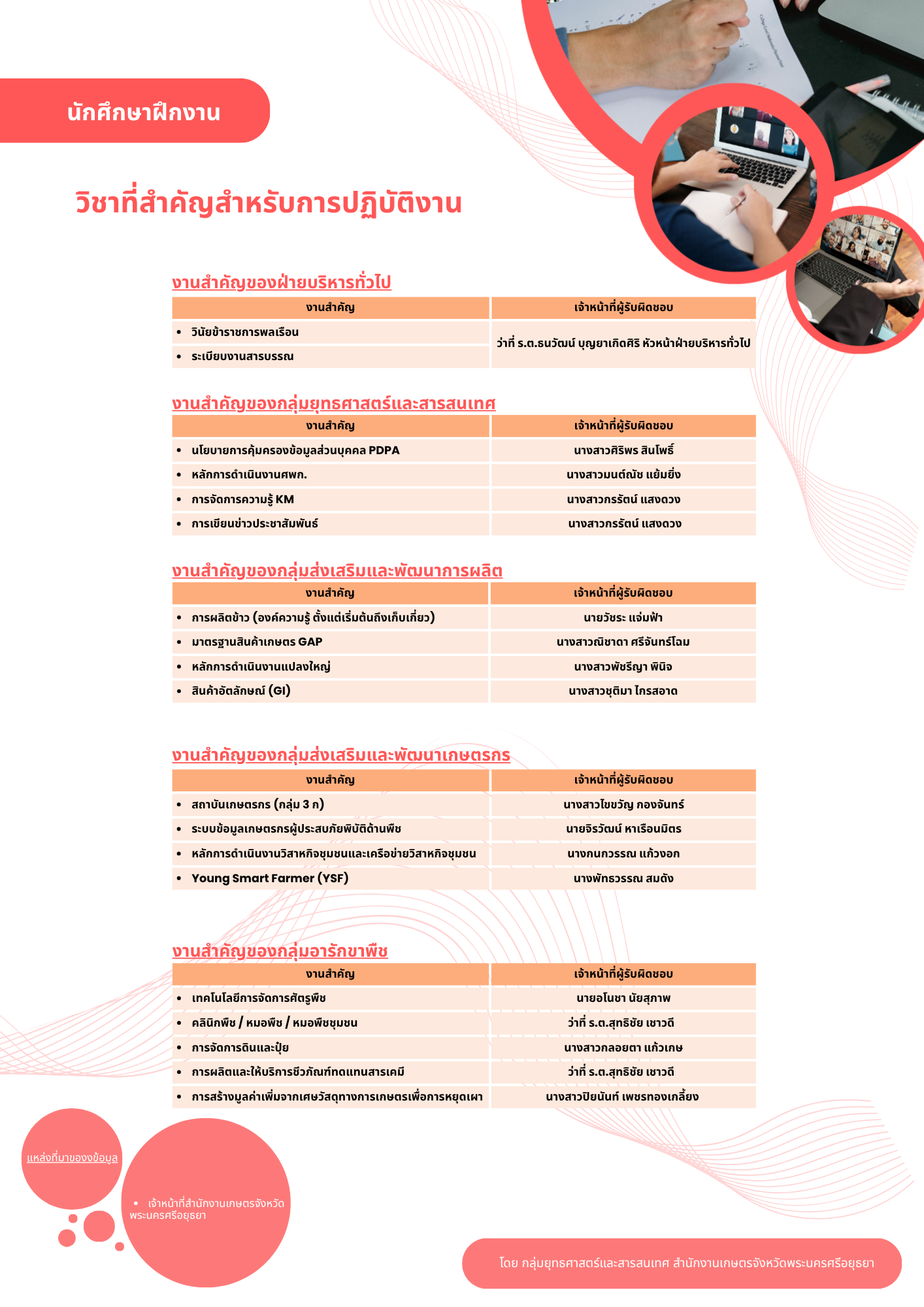 การพัฒนาหลักสูตรการเรียนรู้สำหรับนักศึกษาฝึกงาน สำนักงานเกษตรจังหวัดพระนครศรีอยุธยา