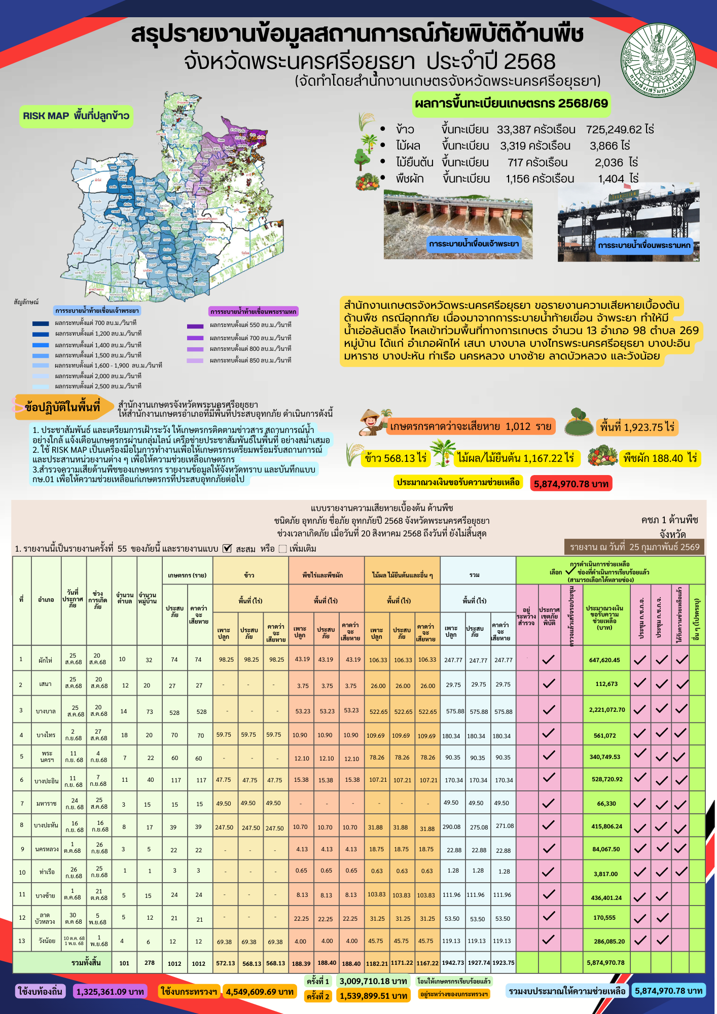 รายงานข้อมูลสถานการณ์ภัยพิบัติด้านพืช จังหวัดพระนครศรีอยุธยา