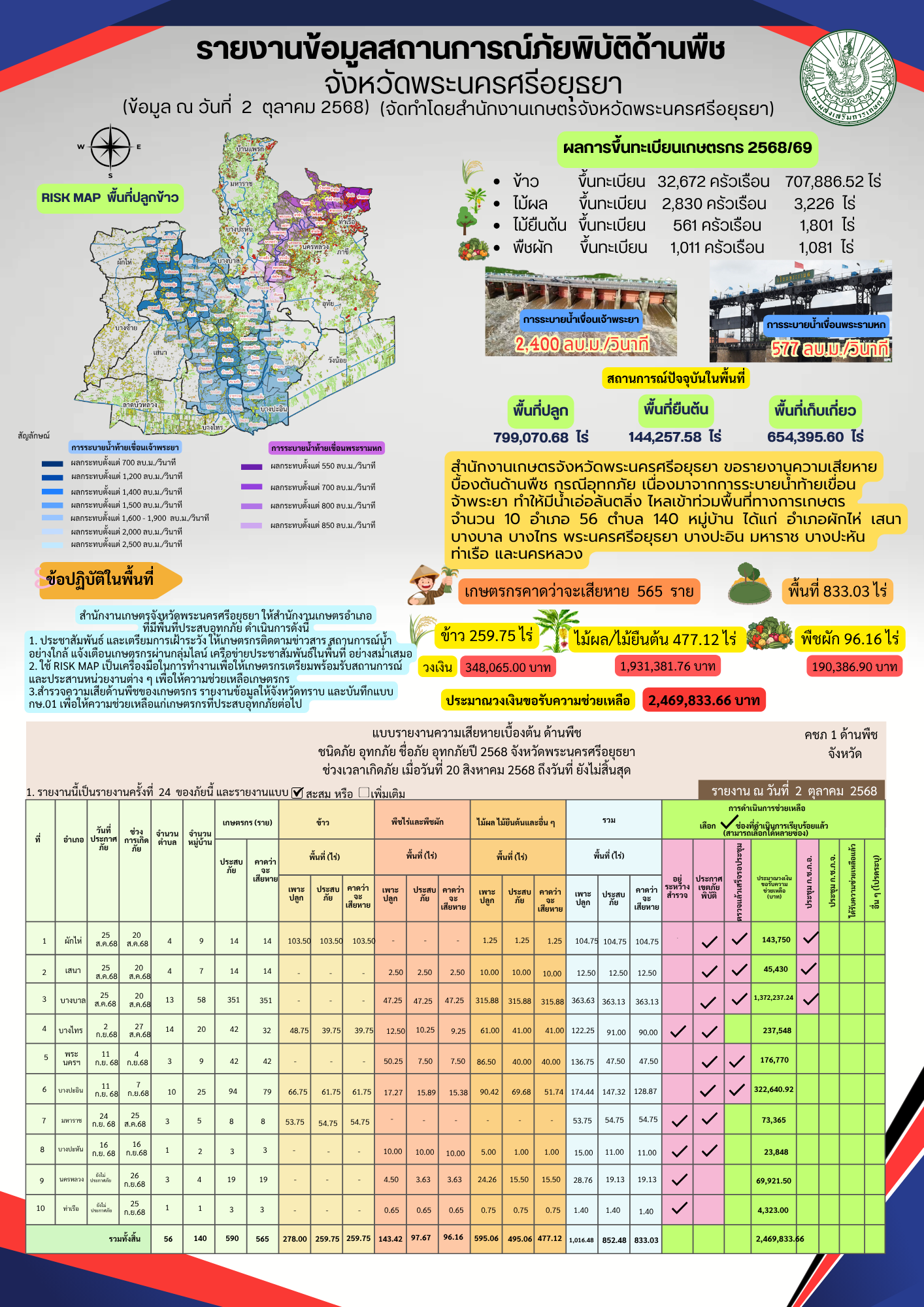 รายงานข้อมูลสถานการณ์ภัยพิบัติด้านพืช จังหวัดพระนครศรีอยุธยา